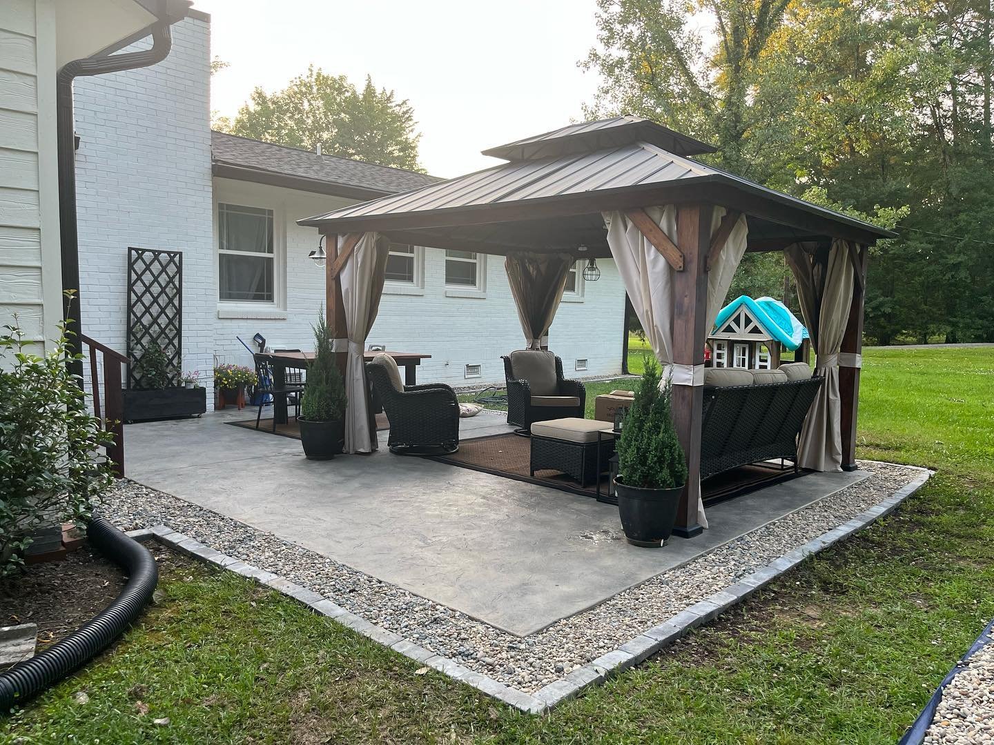 Sealing protects your concrete from moisture and wear. Staining adds color and visual appeal for both indoor and outdoor surfaces.
